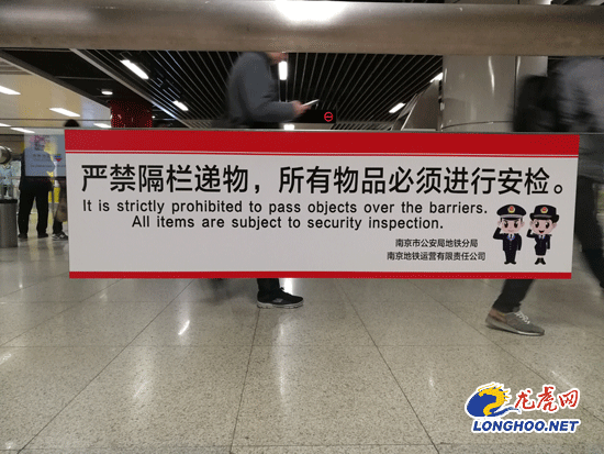 記者還探訪了油坊橋站、大行宮站、西安門站,雖然站廳隔欄上還未張貼標(biāo)識,但站臺工作人員均表示已經(jīng)收到了張貼通知。大行宮站一名王姓工作人員告訴記者,此次張貼嚴(yán)禁隔欄遞物的標(biāo)識是分區(qū)域進(jìn)行的,大行宮站近一兩天內(nèi)應(yīng)該就會貼上。該工作人員介紹,隔欄遞物的情況一直都存在,為此站臺很早就加強(qiáng)了站廳的巡邏力度,發(fā)現(xiàn)有遞物情況都會要求其過安檢后再遞進(jìn)去。